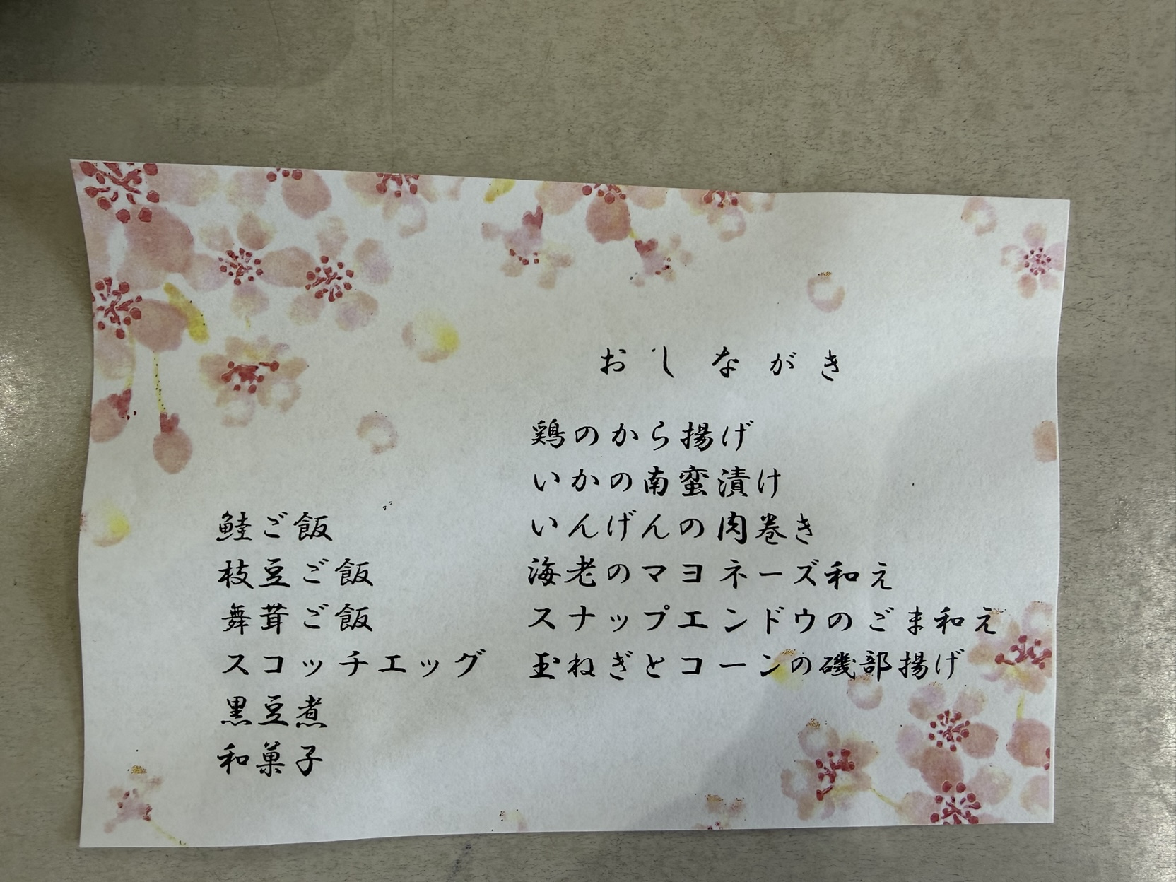 ウォーキング完歩後は管理栄養士・調理員が作ったお花見弁当を、美味しくいただきました。